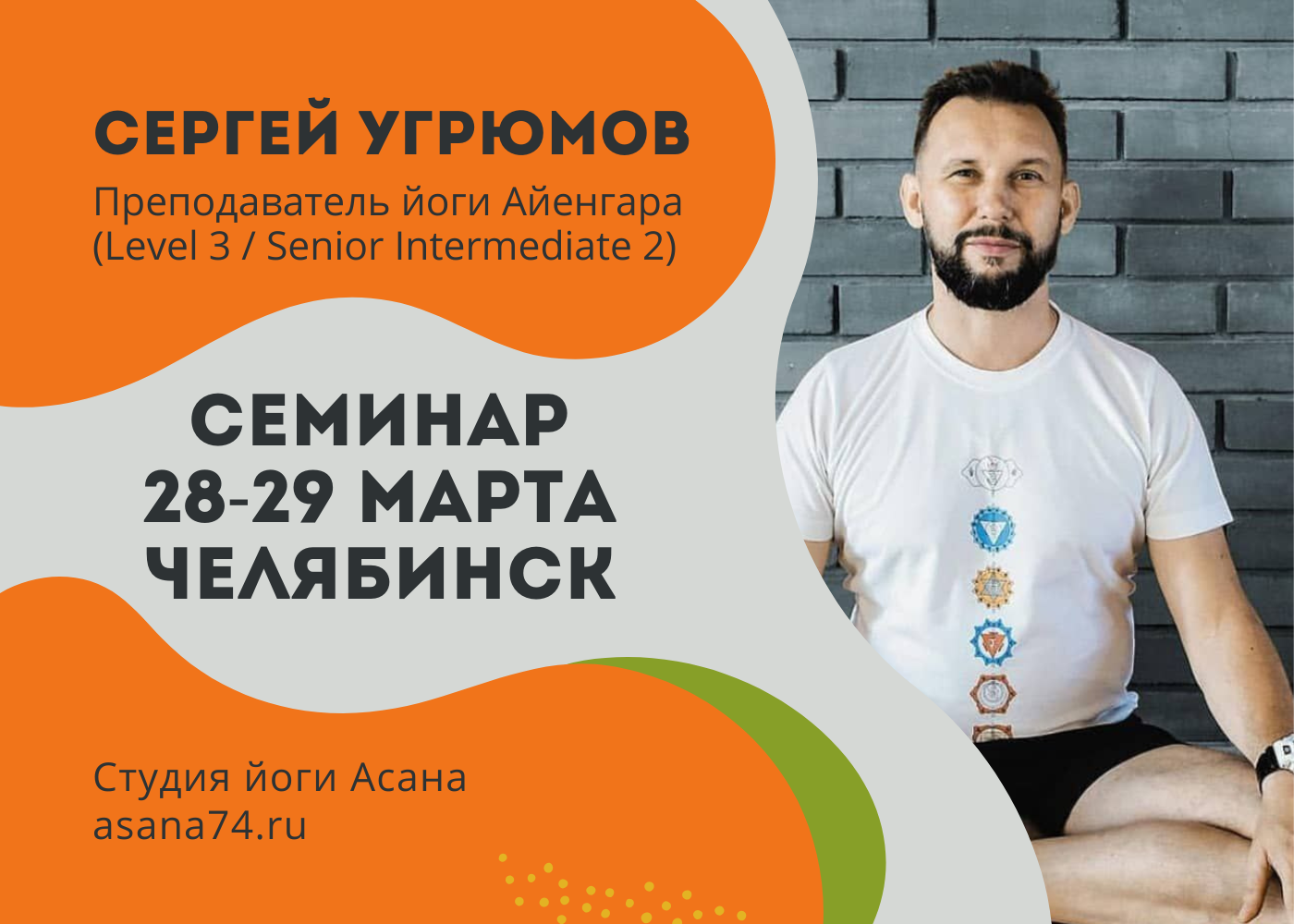 Дорогие друзья, это случилось! В Челябинске впервые пройдет семинар Сергея Угрюмова — одного из ведущих преподавателей йоги Айенгара в России с сертификатом уровня Senior Intermediate 2 и более чем 30-летним опытом.